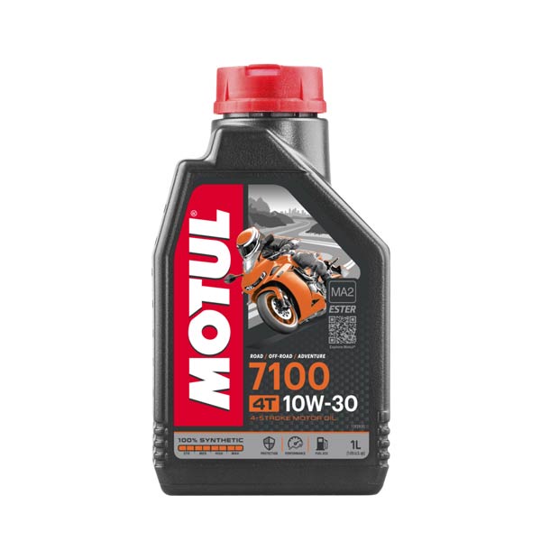 Motul 7100 4T 10W-30 je 100% sintetično mazivo za 4-taktne motorje. Ester tehnologija. Izpolnjuje zahteve JASO MA2.
