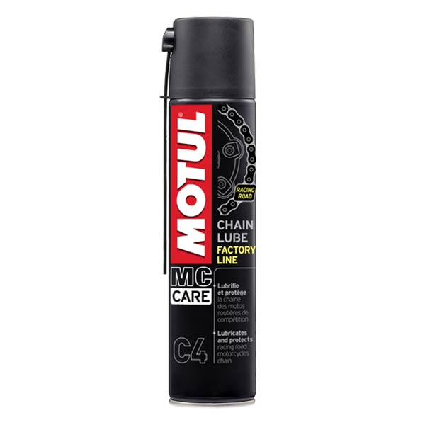 Motul Chain Lube Factory Line je rezultat Motulovih izkušenj. Je mazivo, namenjeno mazanju verig dirkalnih motornih koles za cestne in vztrajnostne dirke. Z uporabo posebne tehnologije in Bora (kem. elem.) je dosežena min. kotalna upornost, katere rezultat dodaten prirastek moči do 1 KM (extra power). Bela barva maziva omogoča vizualno kontrolo in s tem optimalno mazanje. Izvrstna penetracija in ekstremna lepljivost zagotavlja vrhunsko mazanje pri izredni obremenitvi in najvišji hitrosti. Temperaturno obstojno in primerno za mazanje o-ring, x-ring in z-ring verig.